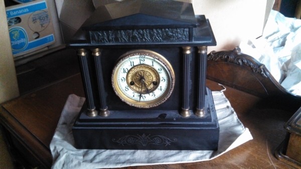 COLLECTIBLES: Walnut Victorian Dresser, Marble Top; Square Ball and Claw Foot Cherry Parlor Table; Turned Leg Parlor Table; Glass Front China Cabinet; Oak Curved Glass China Cabinet; Oak Hutch and Base Glass Front; Turned Spindle Cane Seat Chair: Bentwood and Windsor Chairs; Oak Folding Bookshelf; Oval Parlor Stand; Cherry Chest of Drawers; Round Oak Coffee Table; Oak Office Desk; French Desk; 50's Quality Blonde Oak Buffet, End Tables; Arm Chairs; Collectible Glassware; Lots of Crystal; Flo Blue; Copper Boiler; Lamps; Old Fur Collars and Pieces; Vintage Hand Bags; Linens; 73 Howard Miller Grandfather Clock; Waleto (sp) Clock Co. Marble Case dated 1898 11" x 11" Mantel Clock; Singer 3-110 Portable; Books and more!