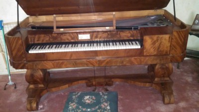 COLLECTIBLES: Rare 19th Century Rosenkranz Square Grand Piano appearing in good condition except needs tuning; Organ Stool with Needlepoint; Olds Special Trombone; Violin unsigned; Metronome; Victorian Settee, Chairs & Large Mirror; Several Parlor Tables; Walnut & Oak Fern Stands; Old Framed Prints, 1 with Geo Washington; GWTW Lamp; Oak Ice Chest in great condition; Spinet & Kneehole Desks; Wall & Shelf Clocks; Double Cell Medical Appratus; Costume Jewelry; Beaded Hand Bags; Pocket Watches; LP Records; Reel-to Reel Recorder; Coffee Grinder; Hall Tree; Copper Boiler; Leather & Crome Sofa & Chair; and more! MODERN: Crome & Pine Dinette Sets; Kitchen ware; Walnut & Maple Bedroom Sets; Flat screen TV; Power Mower; Ladders; Trimmers; Pool Table; Upright Freezer; Recliner; Sofa; lots of Miscellaneous! TERMS: Cash or Pre-Approved Local Checks only with State Issued Photo ID. Statements made day of auction take precedence over printed matter.