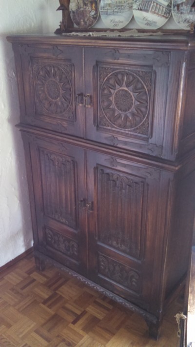 COLLECTIBLES: Rare and Ornate Oak Spanish Revival Nine Piece Dining Set, Arm Chairs; Five Foot Tall Oak Humidor and Other Tables; Several Brass Frame Wall Mirrors & Sconces with Prisms; Circa 1900 Brunswick Pool Table; Albert Pick Cue Rack; 8 piece Iron Patio Set; Iron Patio Table Set; Oak Plate shelf; W. Germany Brass clock; 12 x 7 Oriental Rug; Brass and Marble Fern Stand; Campo-di-Monti Lamp; Metal Leaf and Prism Lamp; T. Jonson Watercolor 24x20; Provincial Bedroom Set; 9 Piece Oak Bedroom Sectional; Iron Leg Bench and Table; Glassware; Figurines; Books; McCoy Vase; Framed Prints; Old Frames; Hand Bags; Old Amp Receivers; Myers Bullet Mixer; Cast Iron; and lots of Miscellaneous! TERMS: Cash or Pre-Approved Local Checks only with State Issued Photo ID. Statements made day of auction take precedence over printed matter. NOTE: The many items of furniture we are selling match the Spanish Revival Style of this home and are of quality and rare. OWNER: Estate of Gladys Ganser PERSONAL REPRESENTATIVE: Ray Ganser