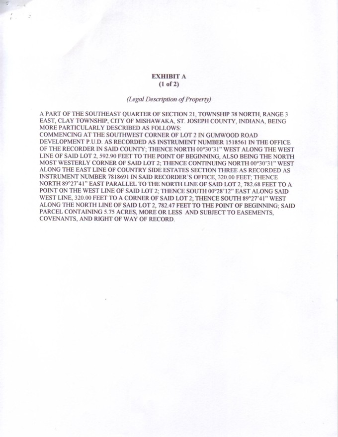 Real Estate: Property is a 5.75 acre rectangular parcel with no direct road frontage with legal access coming from Gumwood Road. The southeast corner of the parcel is located a little over 800 feet northwest of the intersection of Gumwood Road and Cleveland Road (S.R. 23) and is more specifically described in the Exhibit A.